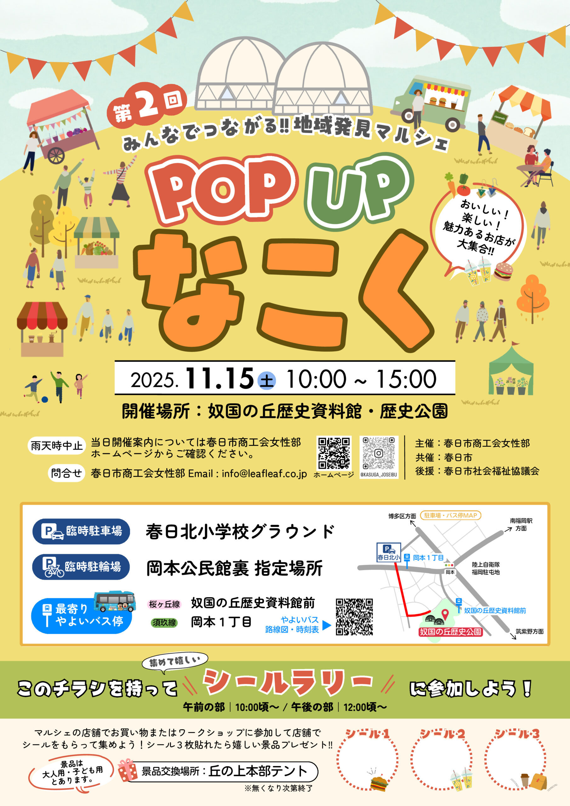 昨年大好評につき、今年も春日市商工会女性部主催イベント「POP UPなこく」を開催します。